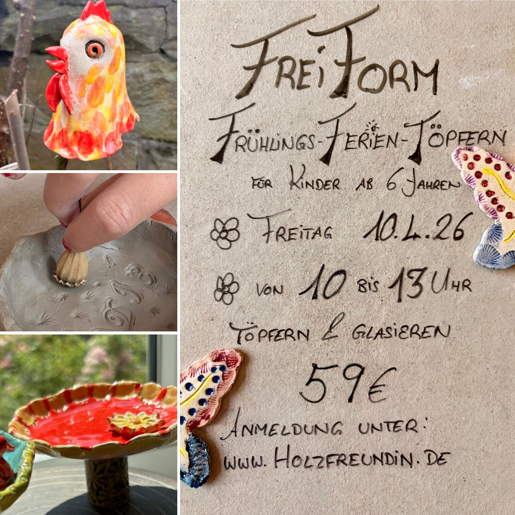 Frei Form, -Ferien- Frühlings- Töpfern für Kids und Jugendliche ab 6 Jahren, 59€